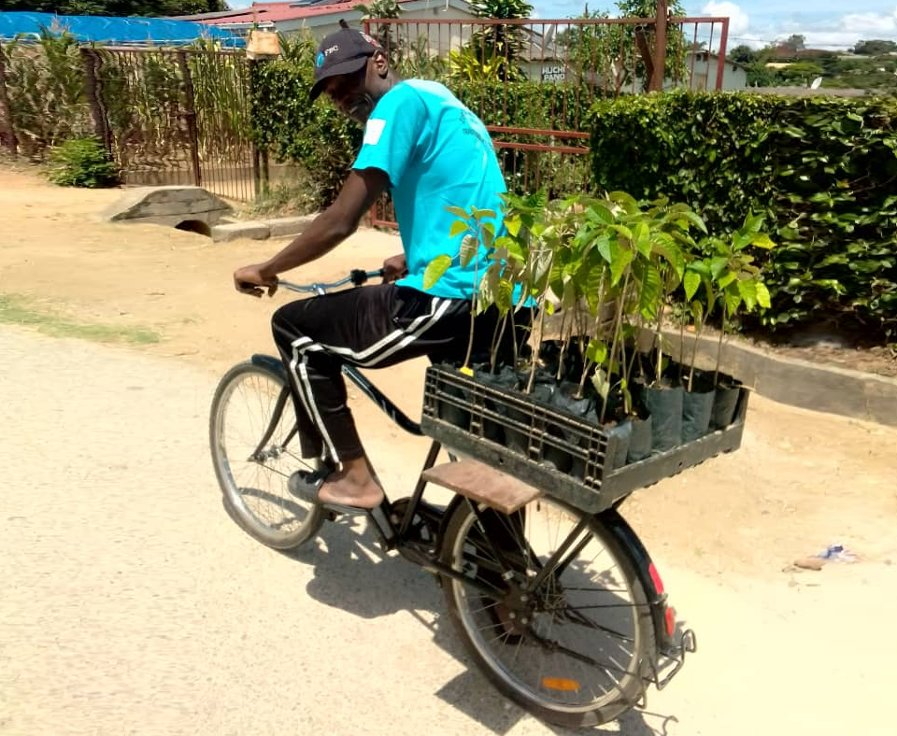 Transport der Setzlinge zu einer Schule